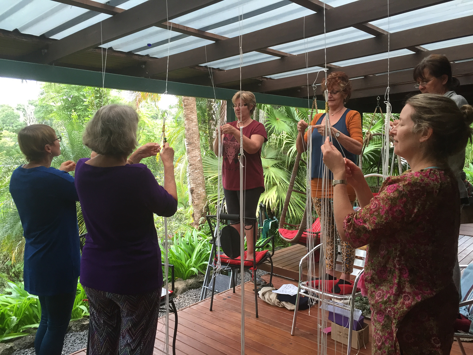 I've run a number of macrame workshops that give participants the skills to create and source materials for their own custom designed macrame plant hangings. This workshop was held at Riversong Retreat in Millaa Millaa, in the beautiful Atherton Tablelands.