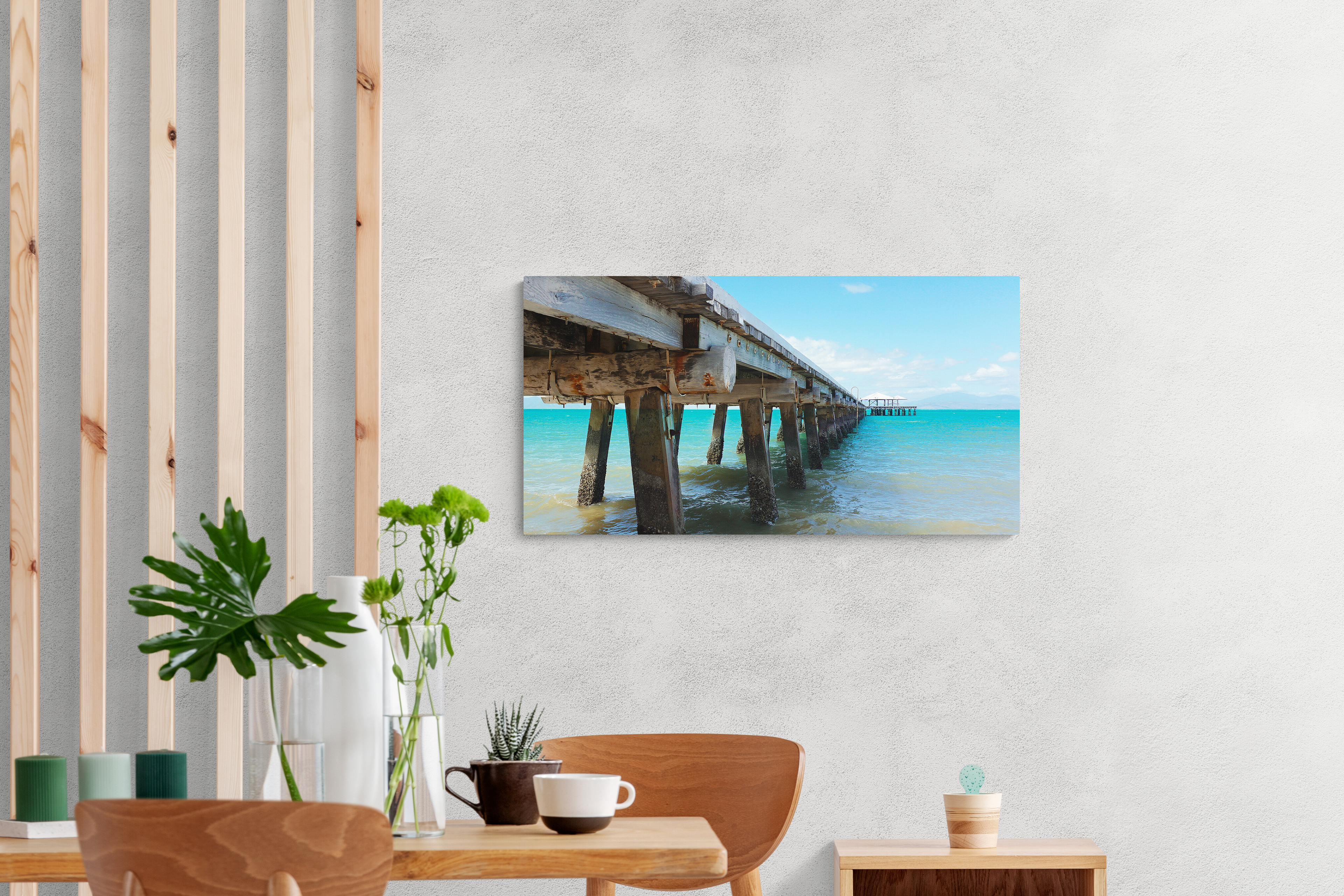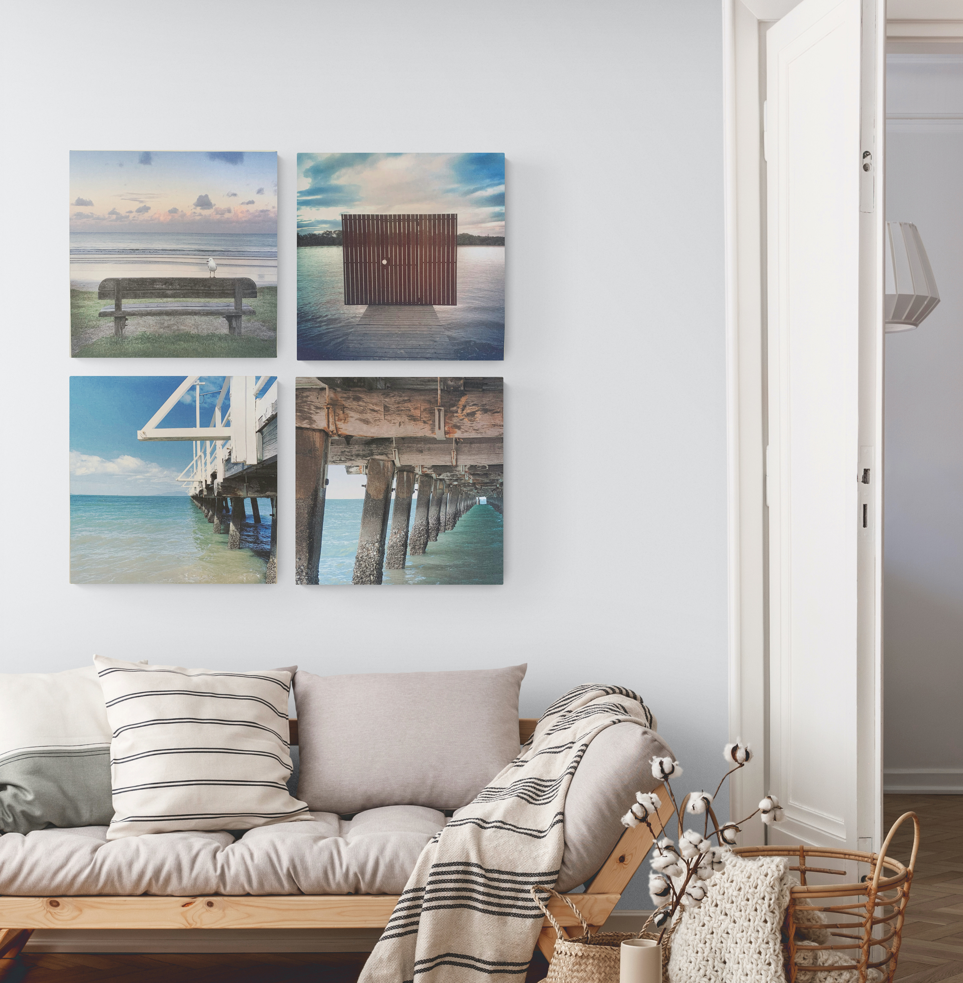 The result of my endeavors is that I have 5 works. They are all digitally printed locally on Panama canvas and hand stretched onto frames. They combine images from Magnetic Island, Noosaville and Lorne and reflect and carry my innermost feelings about covid and beyond a blue horizon we are only starting to experience.