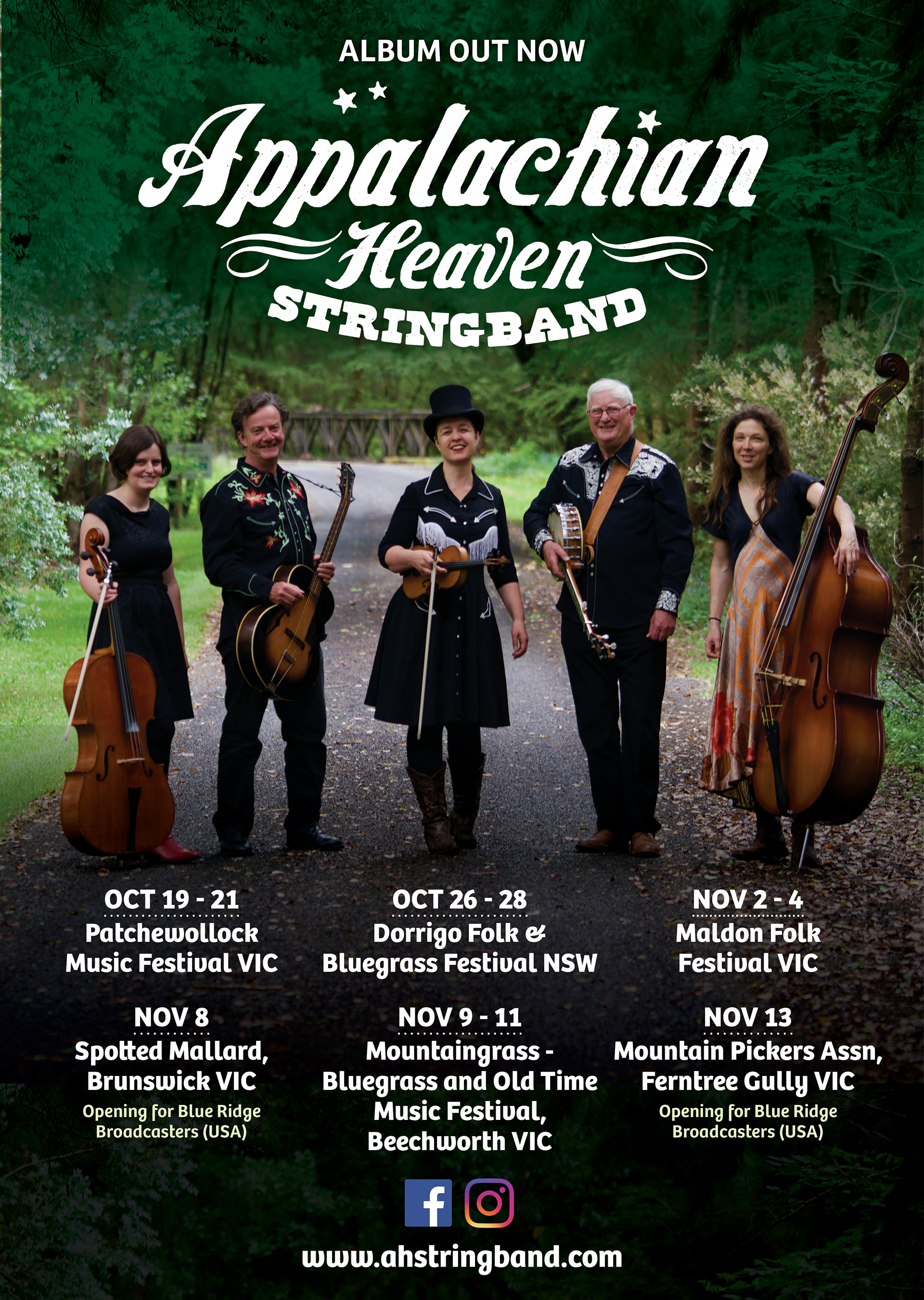 Appalachian Heaven String Band - Social media post announcing upcoming tour dates.