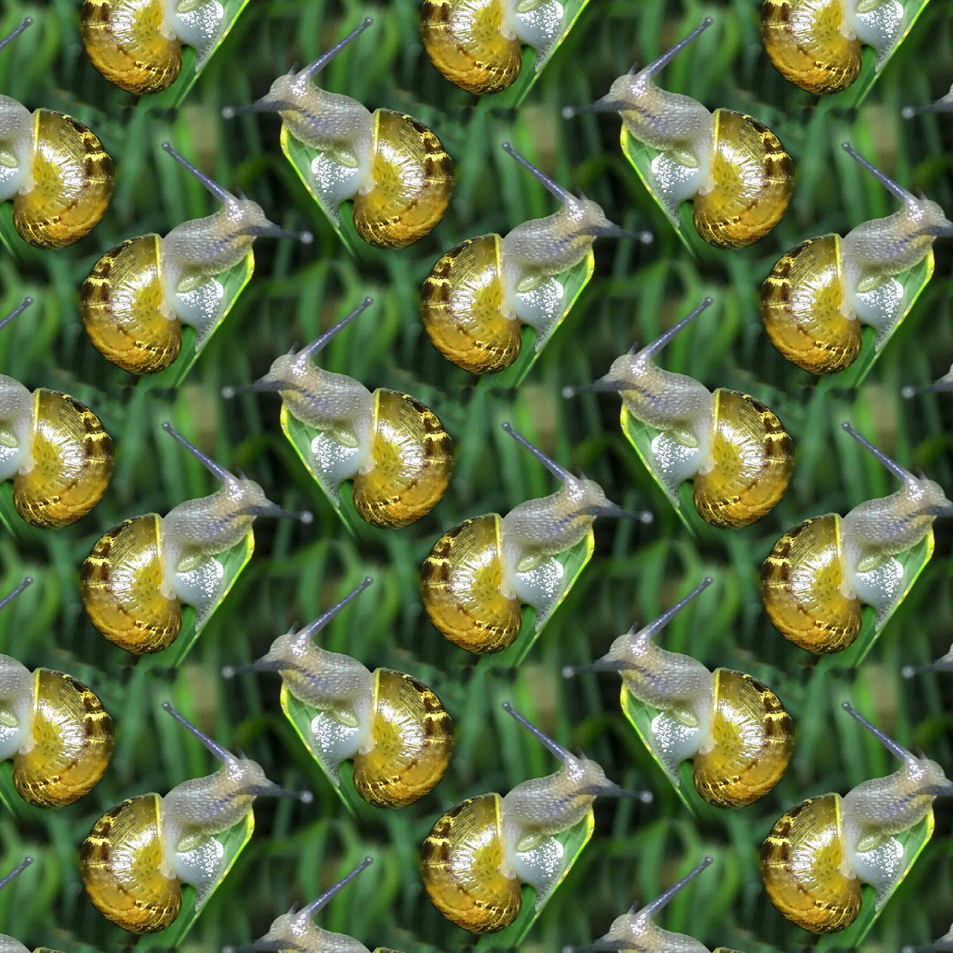 The snail pattern based on a photograph I took one wet and rainy night in the garden with a flashlight. Amazingly the snails shell turned golden with the light - this is not photoshopped!