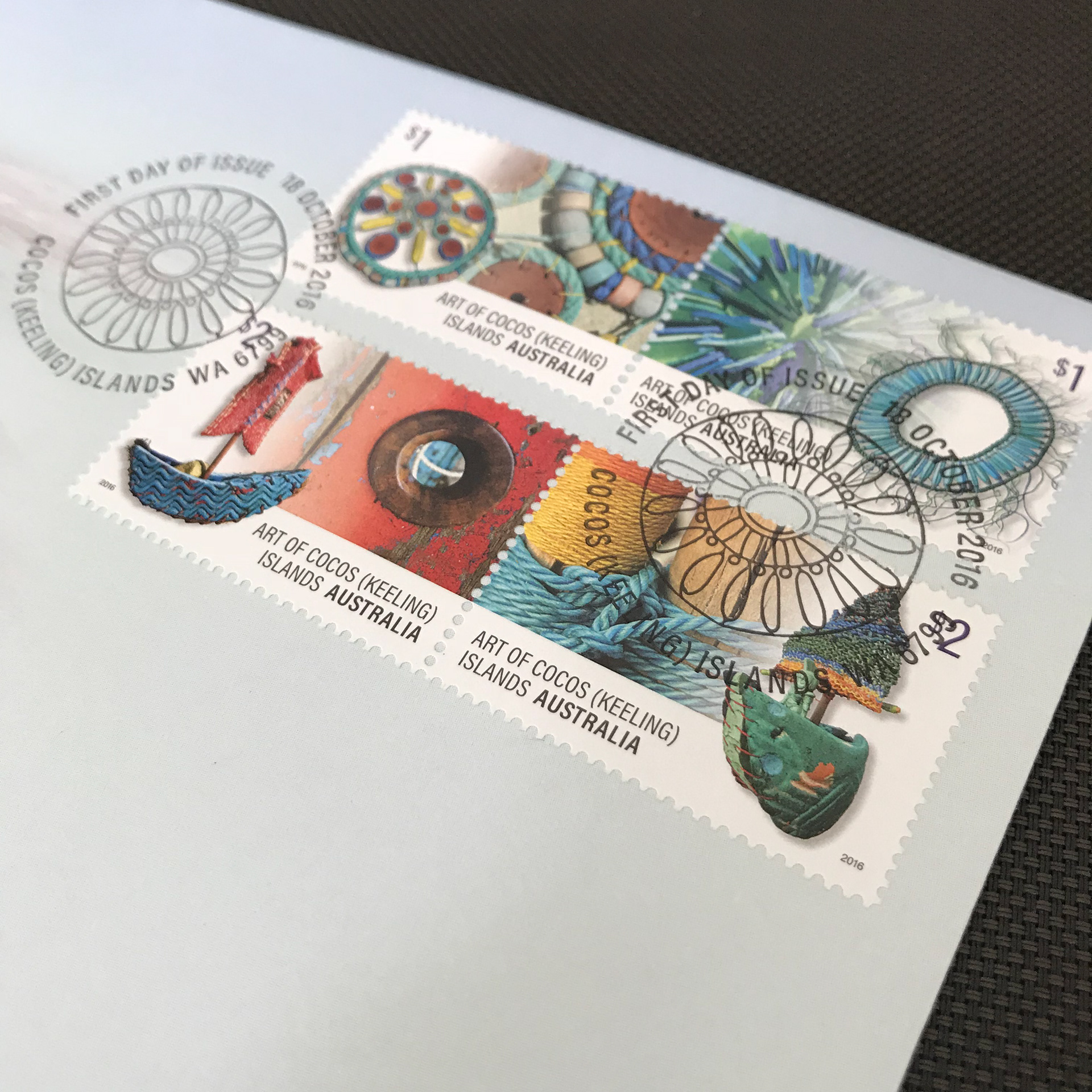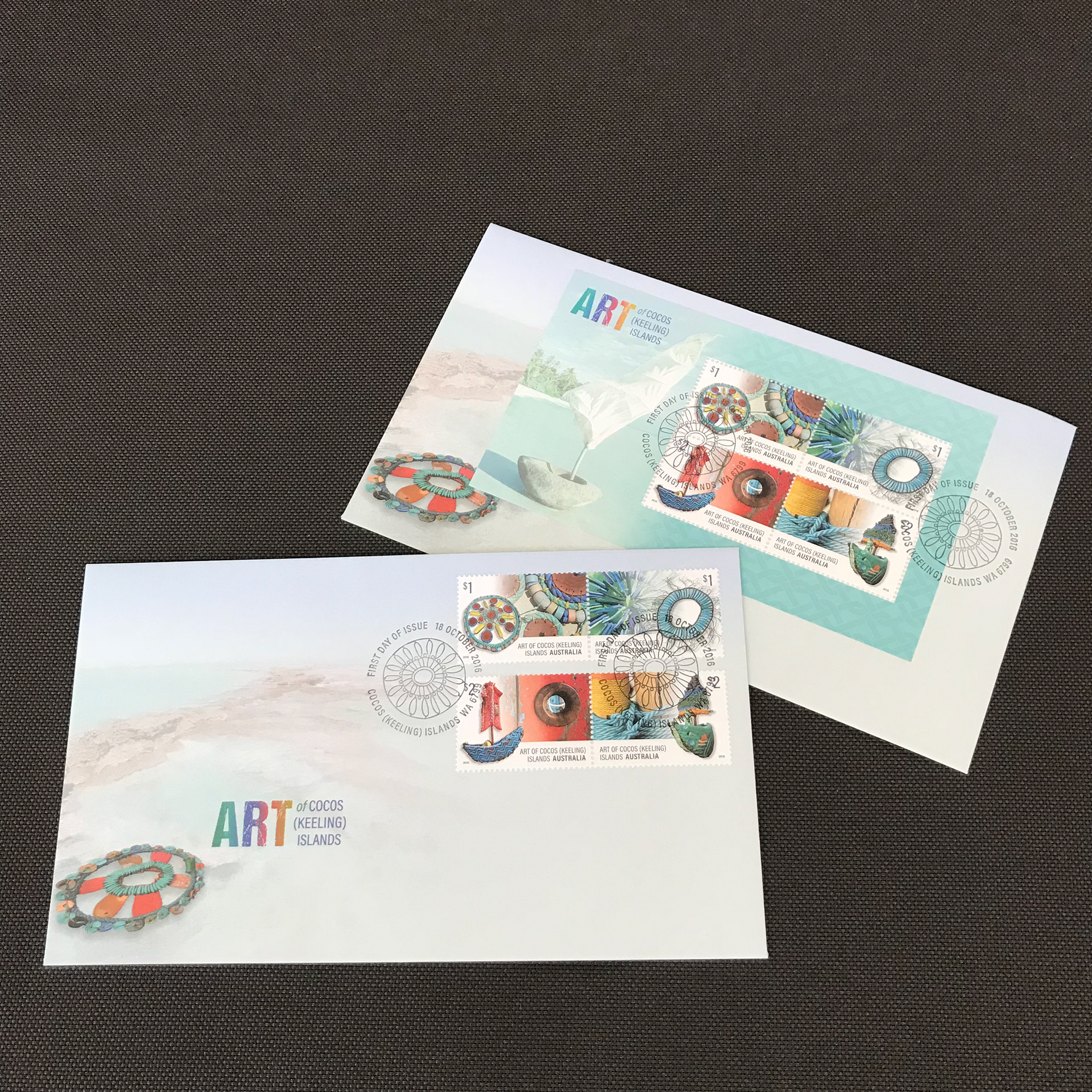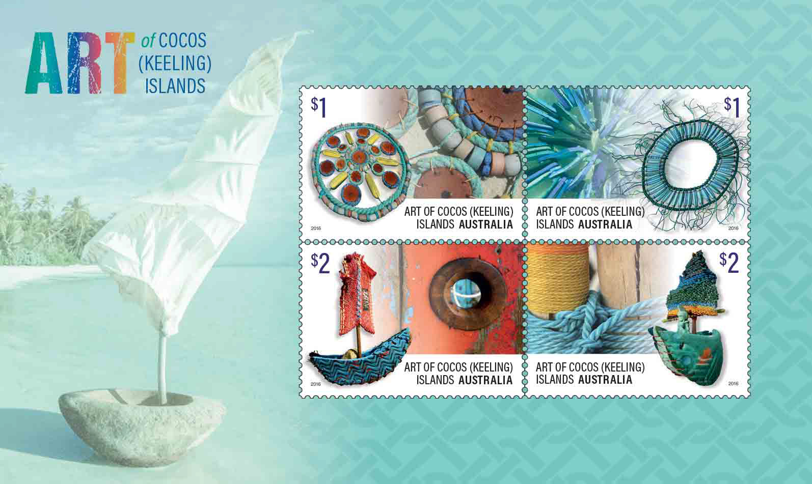 The scope for the Territories stamp issue - Art of Cocos (Keeling) Islands included design of stamps, minisheet and relevant products. It features weavings and sculptures created from ocean pollution and plastic that washes up on the islands' beaches.