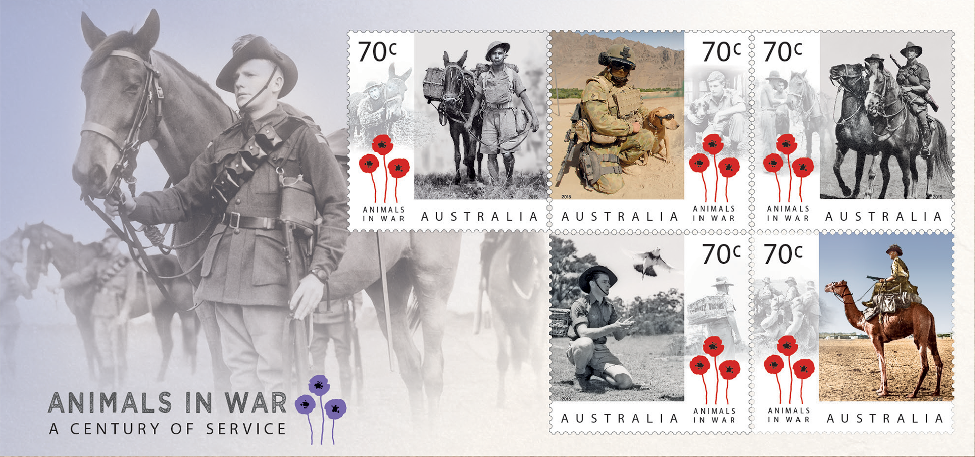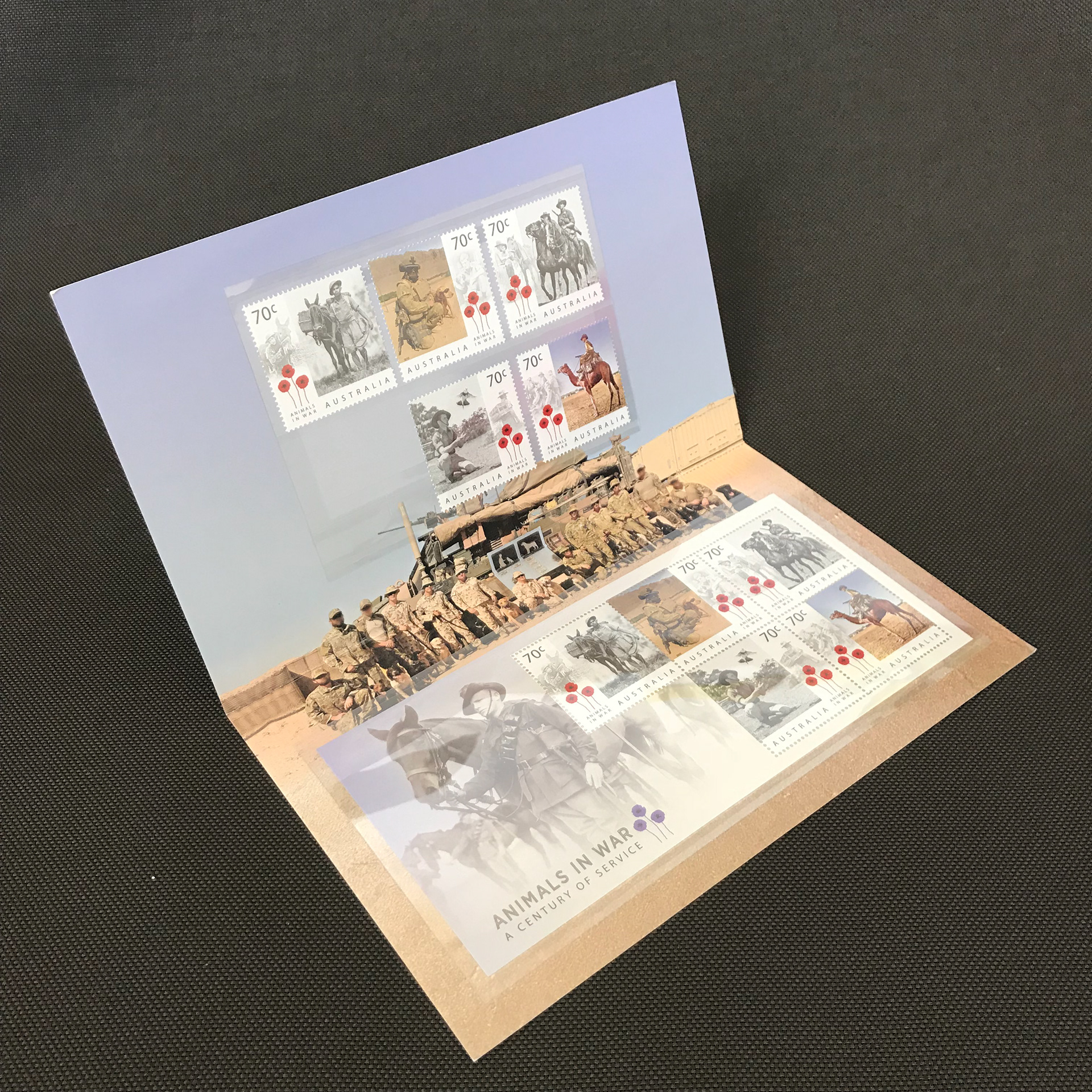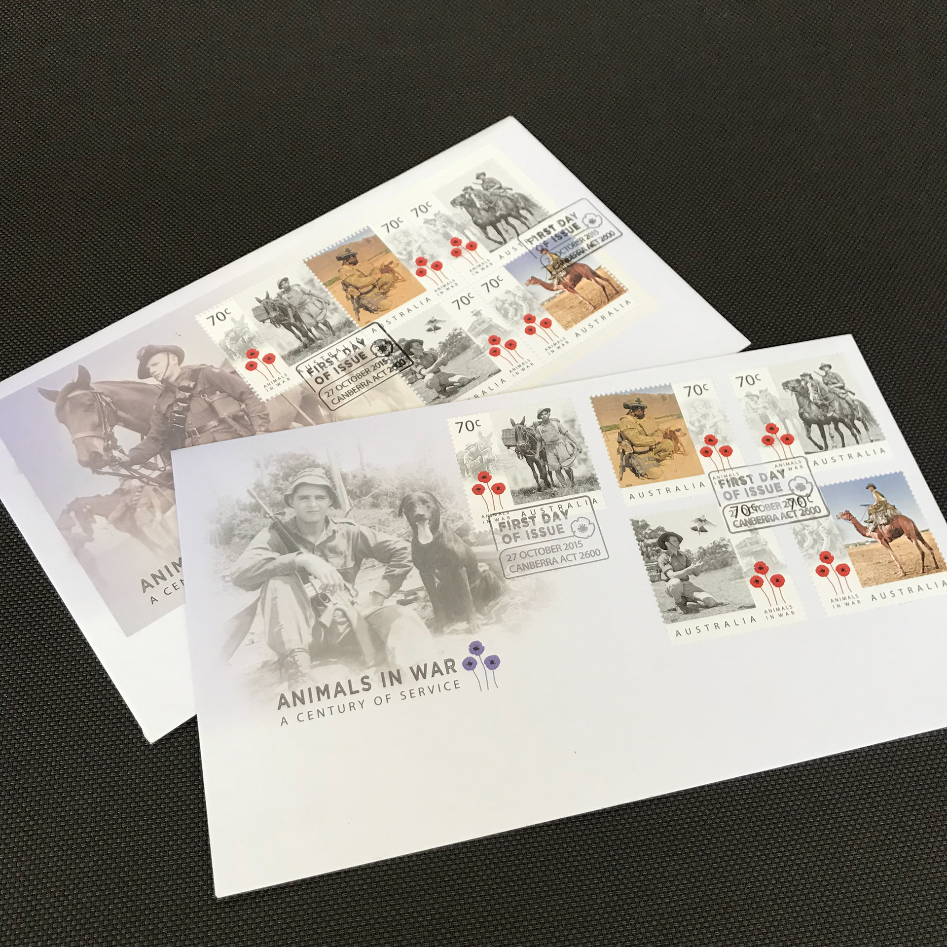 Animals in War is part of a series over 5 years that commemorates the 100 year anniversary of the Great War. This project involved the concept, design, image research and finished art of a range of philatelic products - including stamps, minisheet, stamp pack, first day cover, maxi cards, postmark and a souvenir cover.