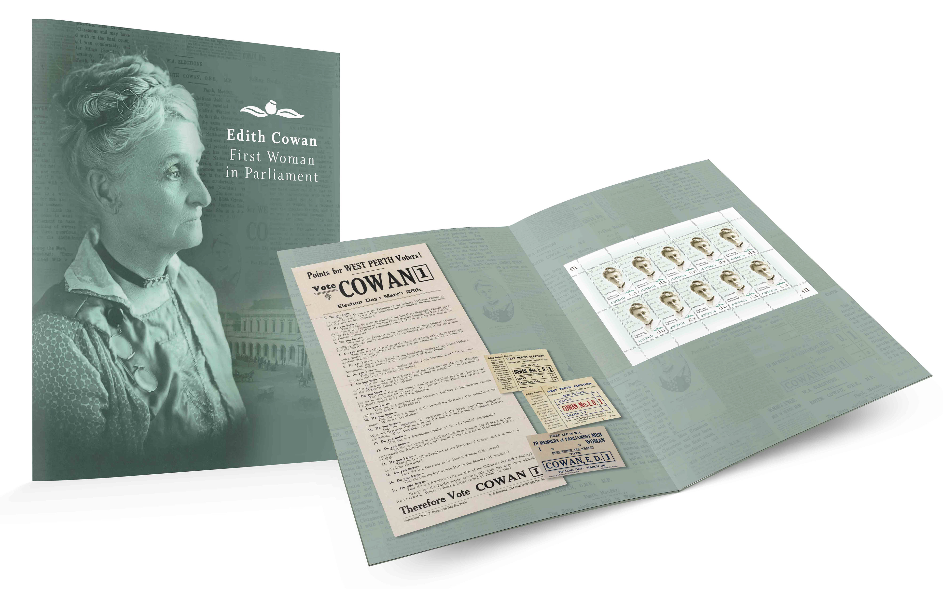 The stamp and products feature quotes that are excerpts from her maiden parliamentary speech. The gumnut motif is a reference to a gumnut brooch that Cowan had made for her election support team. It represented the fact that the seat was, in Cowan’s words, “a hard nut to crack”.
