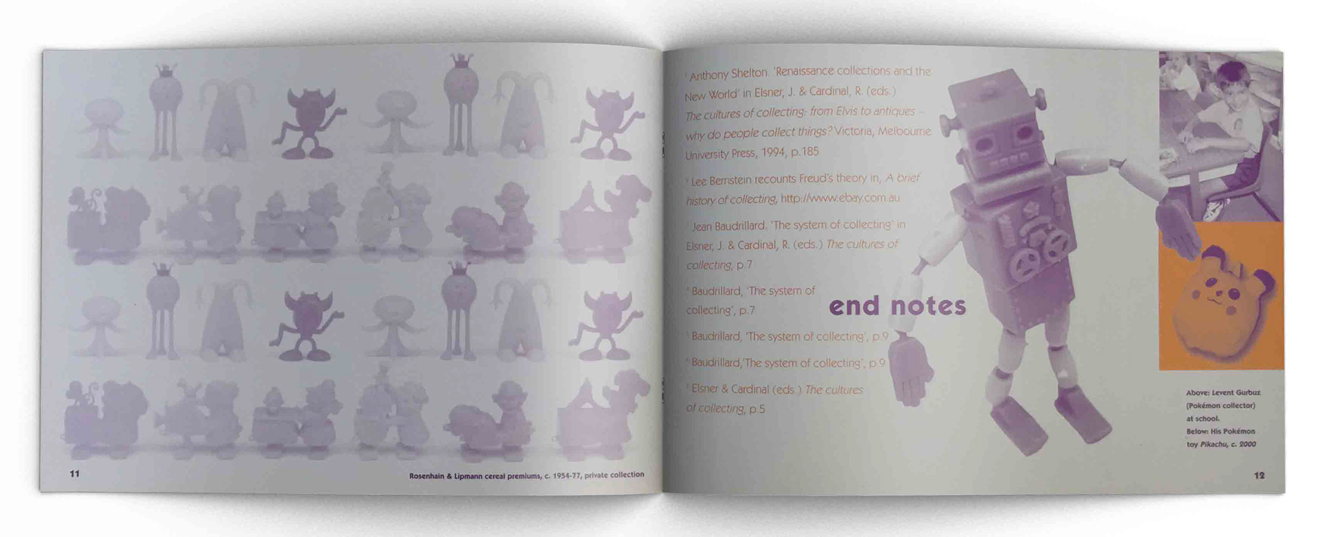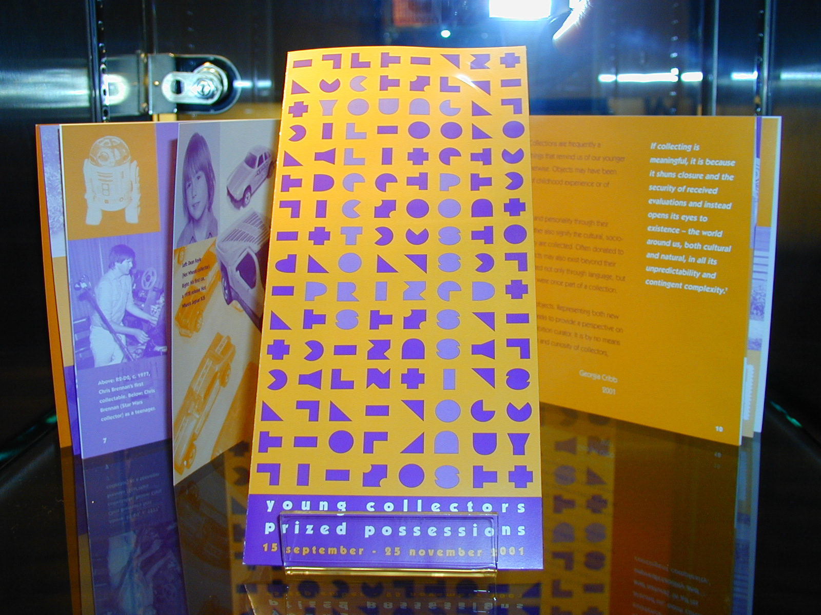 The catalogue and flyer graphics sets out to convey how collections are made up of a variety of objects often related in some way. A collection of shapes are laid out in an ordered grid, some that have a typographic resemblance. It is these ones that spell out the exhibition title.