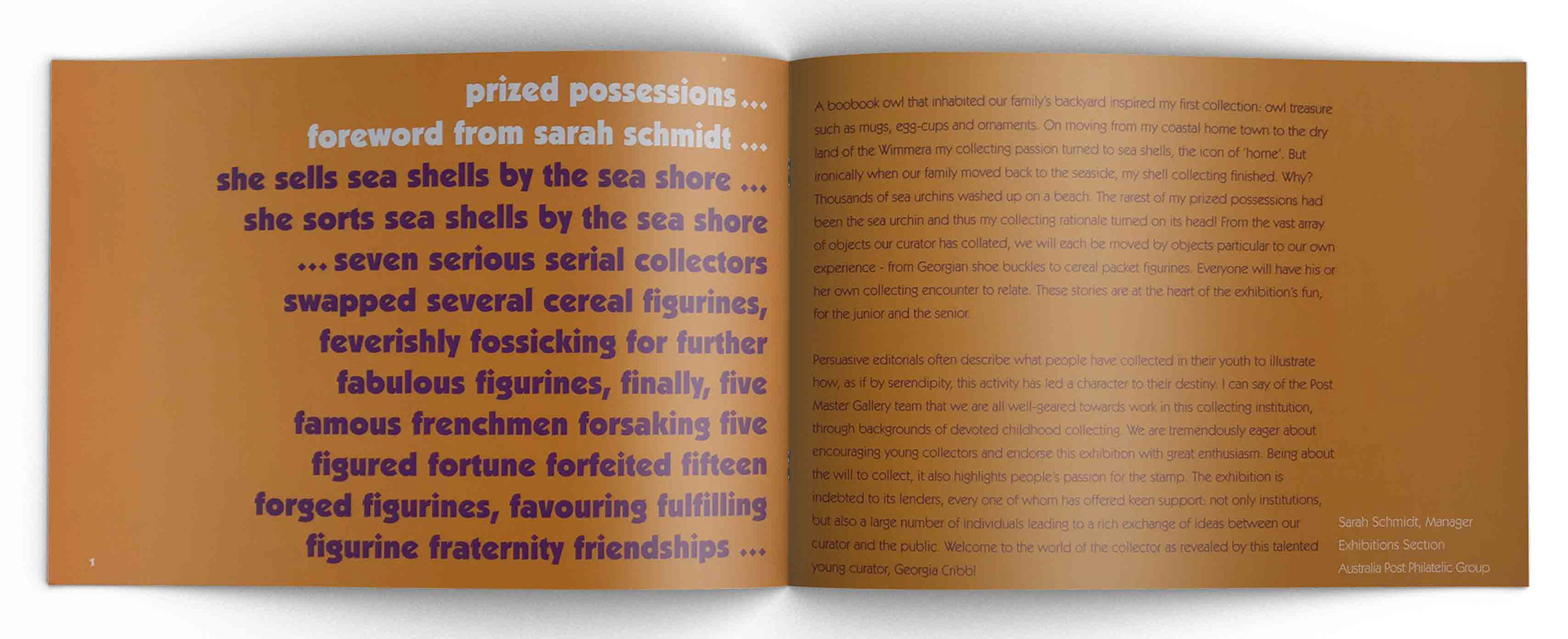 Young Collectors - Prized Possessions - Exhibition collateral for Postmasters Gallery, a space dedicated to philatelic collections. In collaboration with the exhibitions team, my task was to design the branding, brochures, signage, and catalogues.
