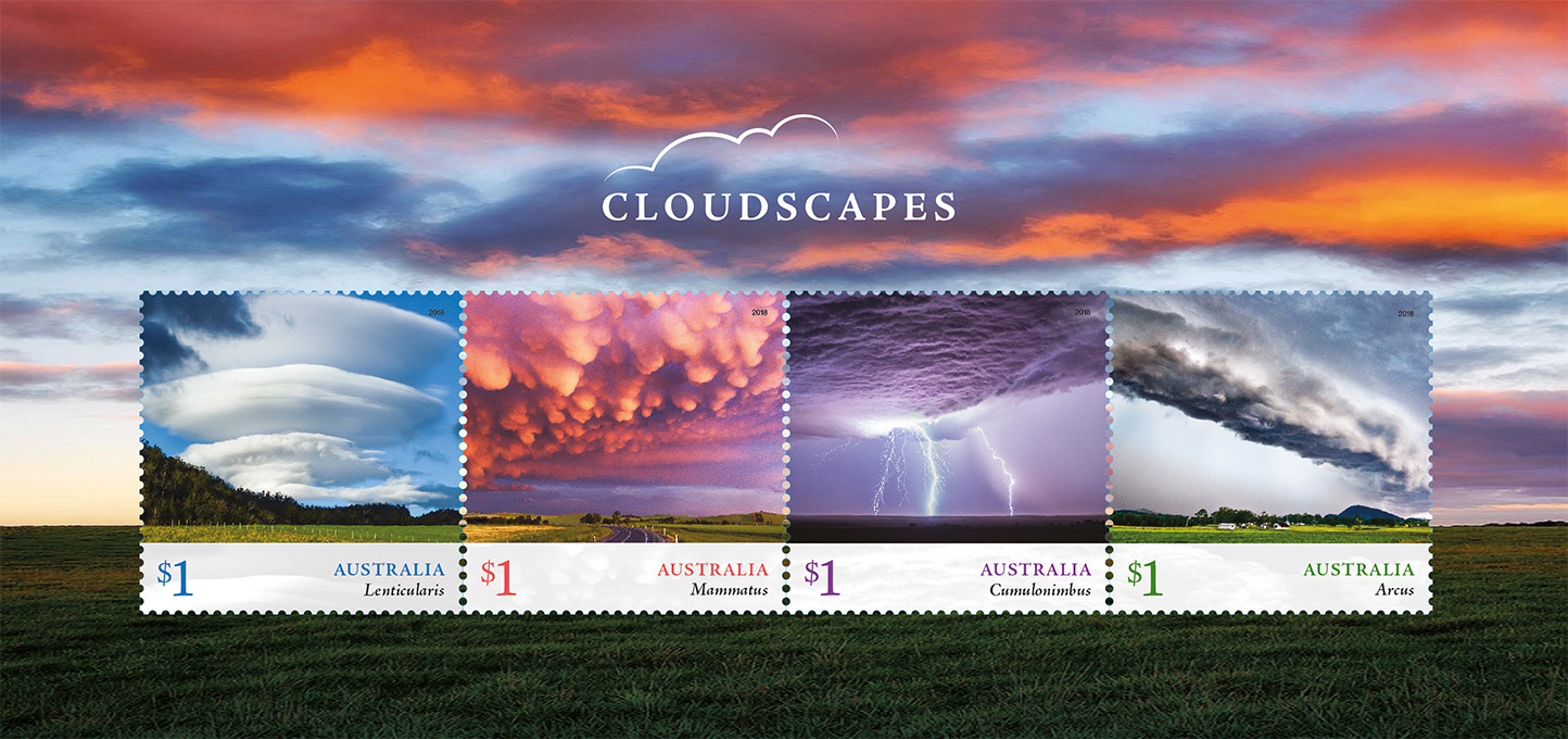 Cloudscapes was a wonderful project whereby much research was conducted through instagram to source appropriate and accurate images that met the philatelic brief. A wide range of stamps and products were designed incorporating some of the most dramatic and rare cloud formations that have been seen in and around Australia.